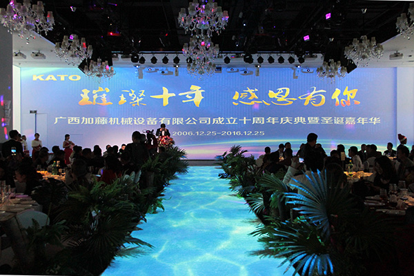 2016年12月25日,主题为“璀璨十年,感恩有你”的广西加藤机械设备有限公司成立十周年庆典暨圣诞嘉年华活动在...